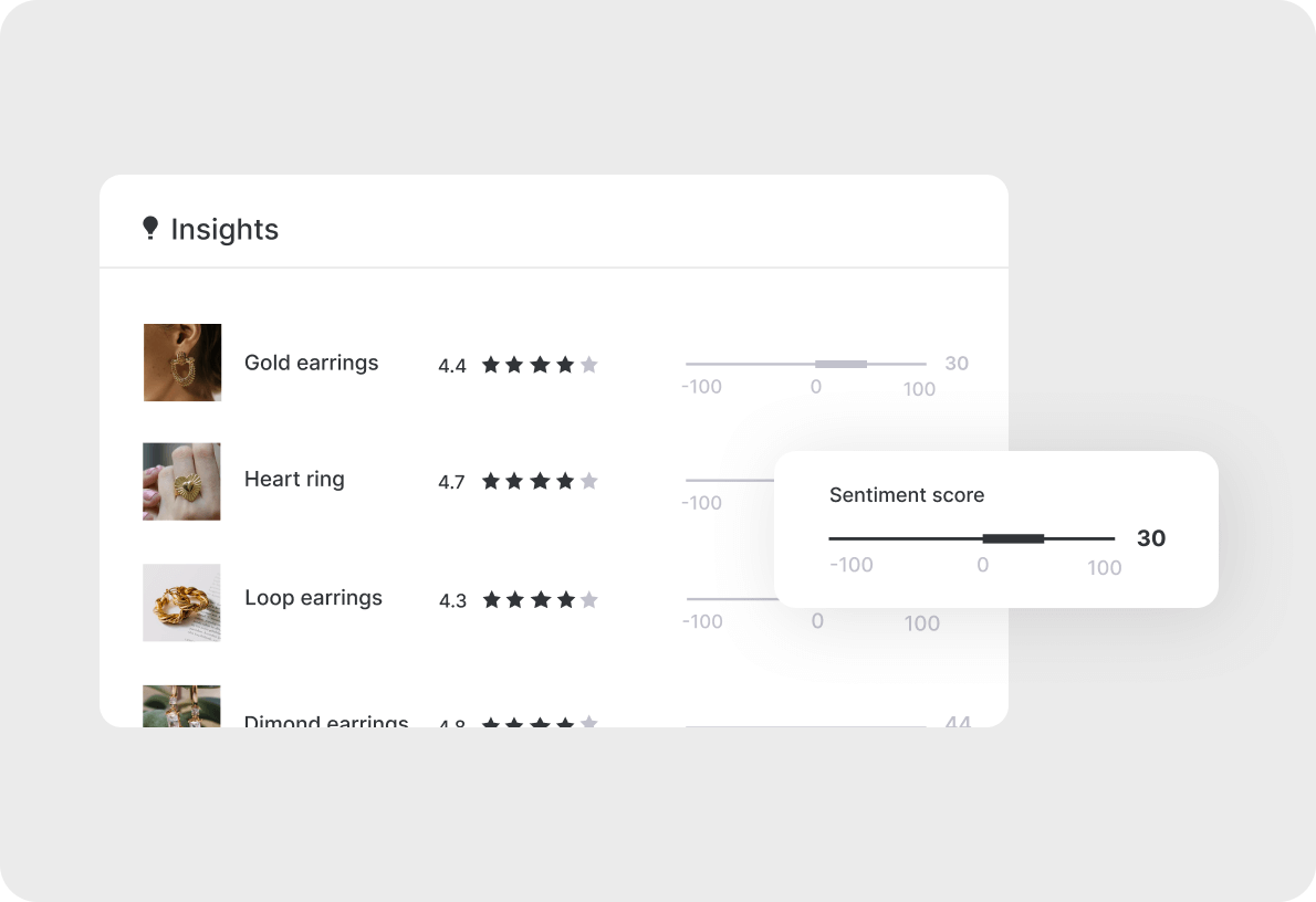 Automate summaries of product insights and customer sentiment for you and your team to stay on top of any changes impacting your store.