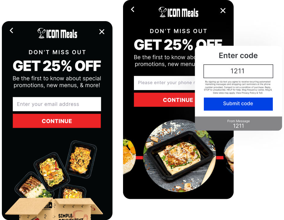 Now, ICON Meals has more thoughtful SMS & email orchestration, better identification of their on-site visitors, and smarter AI-powered pop-up triggers. As a result, they’re seeing a direct revenue lift and faster list growth.