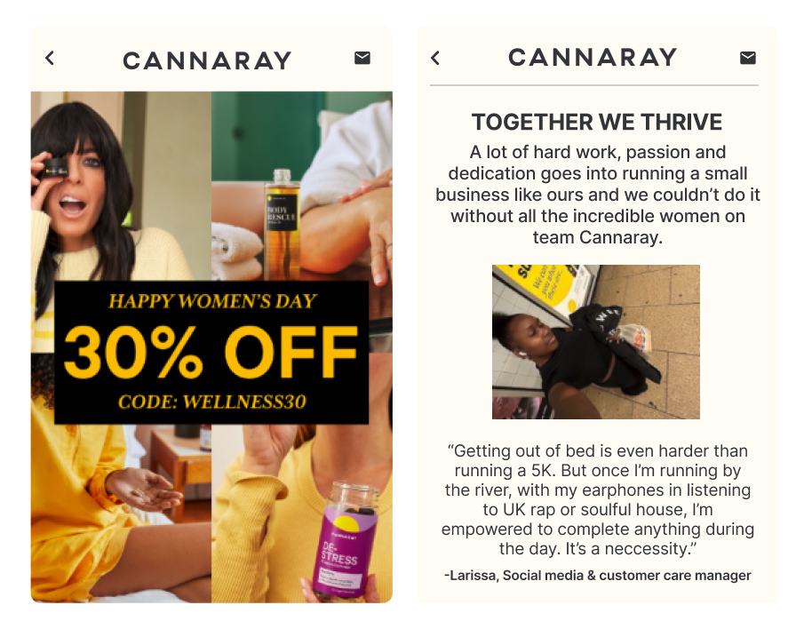 With guidance from their CSM, Cannaray have explored new ways to add value and build relationships with their subscribers. For example, their International Women’s Day campaign featured inspiring quotes from female team members on what empowers them, adding a personal touch.