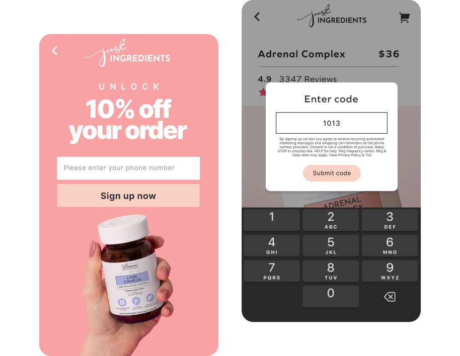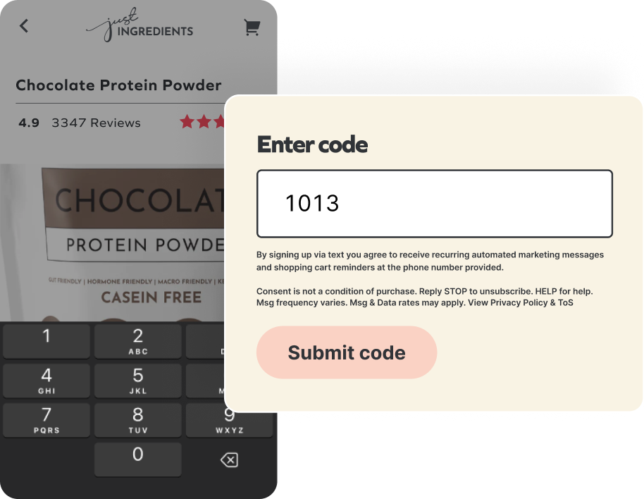 Just Ingredients enhanced their pop-up with On-Site Verification, allowing subscribers to verify their phone number using a one-time code, without ever having to leave the site.