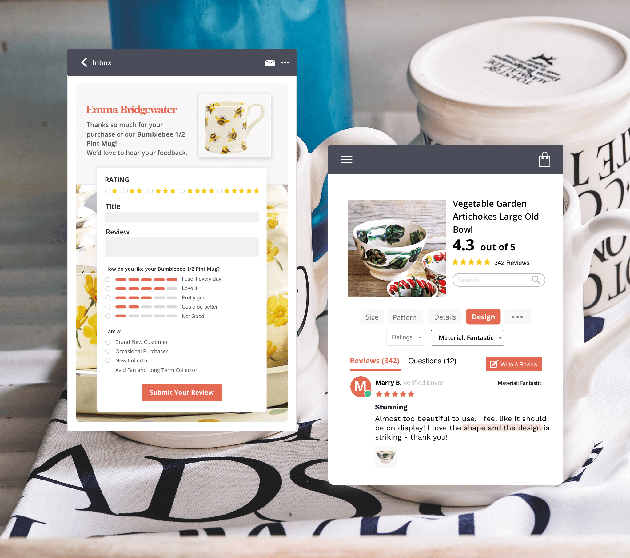 Emma Bridgewater has a massive fanbase of highly engaged and dedicated shoppers, and it was imperative for them to be able to showcase that passion on site. They needed a solution that would incorporate their customer community to amplify the shopping experience with social proof.