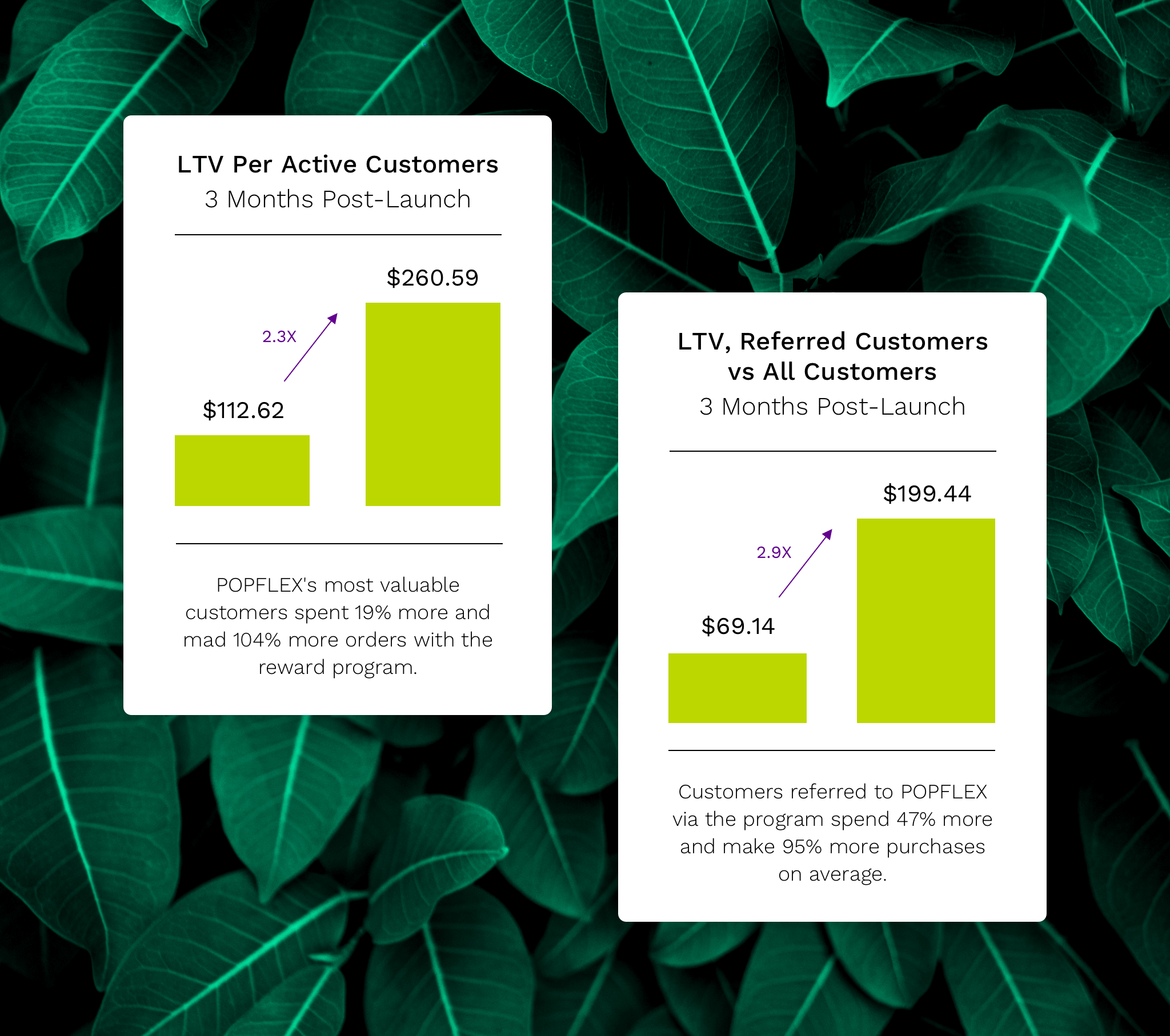 After just three months, the POPFLEX program didn’t just look amazing: it drove tangible, top-line revenue. The Facebook and Instagram campaigns drove engagement, which in turn drove revenue. Customers who liked or followed the brand via Yotpo made 72.6% more purchases on average. As measured by referrals and incremental purchases, Yotpo yielded POPFLEX $8 for every $1 invested after three months. Following the launch of the program, over 5% of the purchases made onsite came from referrals.